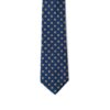 Blue silk tie by Giorgio Armani with a yellow and white geometric pattern.