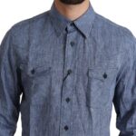 Absolutely stunning, 100% Authentic, brand new with tags Dolce & Gabbana GOLD button down casual shirt with stripes features a spread collar, long sleeves and full button closure.