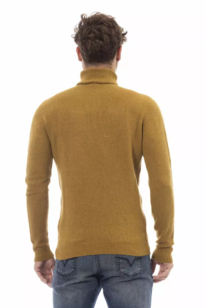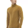 Elevate your wardrobe with Alpha Studio’s exquisite Turtleneck Sweater, a seamless blend of luxury and comfort. This classic piece exudes sophistication with its long sleeves and finely ribbed collar, cuffs, and bottom hem. Crafted from a sumptuous mix of alpaca leather, elastane, polyamide, modal, and cotton, it offers unparalleled softness and a flattering fit. Proudly made in Italy, this sweater in a rich brown hue is an essential for the modern man with a penchant for high-end style.