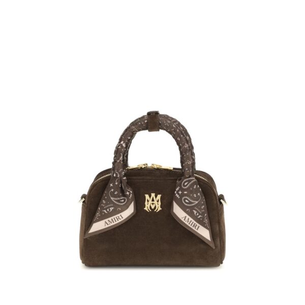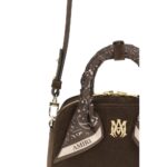 The Micro Ma Handbag by Amiri reinterprets a timeless shape with the house’s signature elegance and motifs. Crafted from high-quality leather, it features a top handle embellished with knotted paisley scarves, adding a touch of originality and sophistication. The iconic double zip closure and Ma icon detail complete the design, giving the bag an exclusive and contemporary allure. An accessory that combines classic style and innovation.