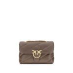 Calfskin Love Classic Shoulder Bag by Pinko, front closure with magnetic button, iconic gold-plated Love Birds logo embossed on the front, quilted and padded design, double internal compartment, sliding chain shoulder strap, iconic brand monogram embroidered tone-on-tone on the back.