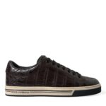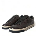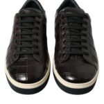 Gorgeous brand new with tags, 100% Authentic Dolce & Gabbana croc-exotic leather in a brown shade sneakers. They feature round toes, laced-up vamps, and stripe detailing on the midsoles.
