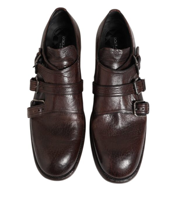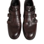 nformal Derby shoes, crafted from rich brown leather. Featuring a classic monk strap closure for a refined twist on traditional lace-ups, they offer a sleek silhouette and polished finish. Perfect for pairing with tailored suits or dress trousers for an elevated formal look.