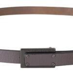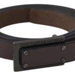 nis crafted from brown leather, this classic belt featuring black-tone hardware and a fashion buckle fastening.