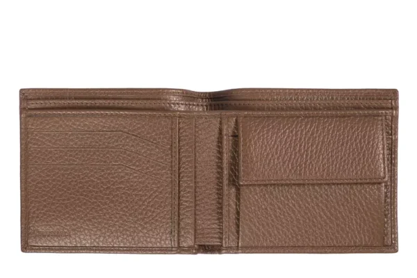 Men’s Wallet In Tumbled Leather. Opening In A Book. Coin Compartment And Card Holder. Coin Compartment. 13x16x3