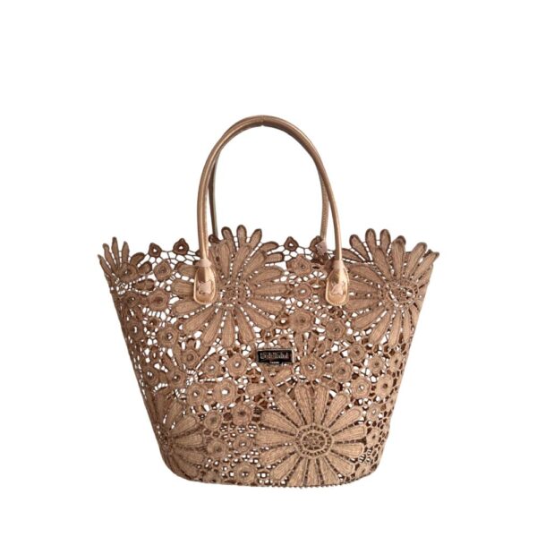 Step into sophistication with the Baldinini Trend handbag, a floral openwork masterpiece that effortlessly combines elegance and functionality. Its basket-style shape, accented by bold contrast details and a signature front logo, makes a fashion-forward statement. The double rigid handles offer durability, while the removable fabric inner pouch with a drawstring closure ensures versatility. Ample room for essentials measured at 32x30x19 cm, this bag is your stylish companion.