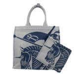Introducing the Burberry Navy EKD Canvas Tote Bag With Coin Pouch, a sophisticated accessory that effortlessly combines style and functionality. Crafted from durable canvas, this tote features the iconic Burberry Knight logo, showcasing a timeless design that appeals to the modern woman. The tote bag, with dimensions of 14 inches in height, 15.5 inches in width, and a depth of 5 inches, offers ample space for daily essentials, making it the perfect choice for business meetings, casual outings, or special occasions.