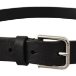 Dolce & Gabbana - Calf Leather Silver Tone Black Metal Buckle Belt