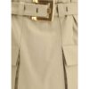 Balmain’s cargo Miniskirt reinterprets utility style with a sophisticated twist. Featuring a removable belt with a PB engraved gold metal Anthem buckle, it has two side pockets with gussets and a flap. The back closure with exposed zipper and Balmain engraved slider adds a bold iconic detail to the design.