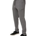 njogger sweatpants deliver effortless comfort with a touch of luxury. Crafted from soft gray cotton, they feature an elastic waistband with drawstring for a personalized fit, tapered silhouette. Ideal for lounging or casual outings, these versatile trousers combine relaxed style with designer appeal.
