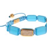 nWhite CZ Diamonds, Blue Opal Flatbeads