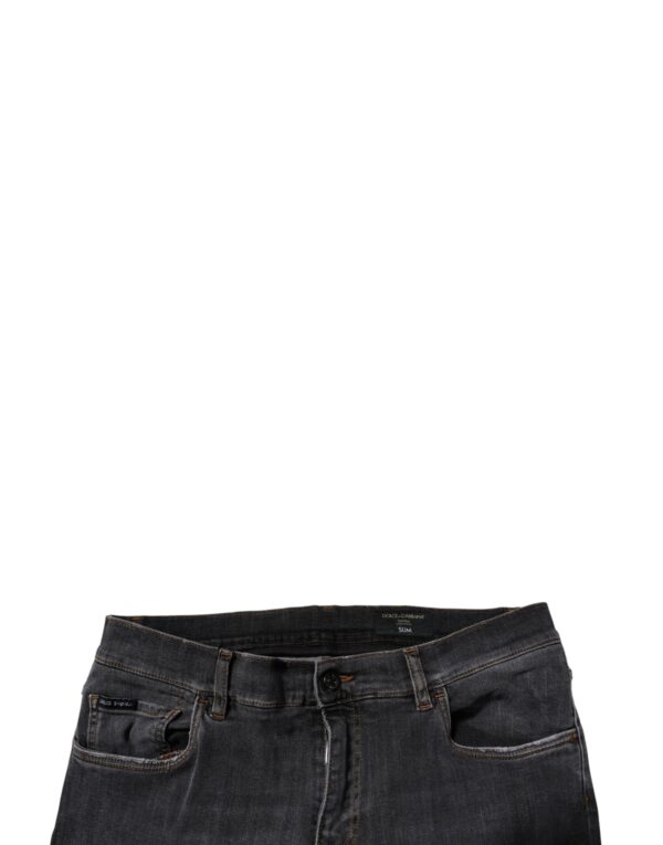 Dolce & Gabbana - Dark Gray Washed Cotton Slim Fit Denim Jeans