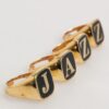Gorgeous brand new, 100% Authentic Dolce & Gabbana ring set. Features a set of four individual gold-tone brass rings, each displaying a letter to spell out JAZZ. Designed with an adjustable fit, these bold statement rings reflect the brand’s playful yet luxurious aesthetic—perfect for music lovers and fashion-forward dressers alike.