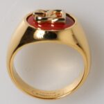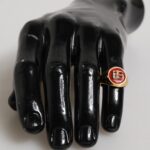 nFeatures a bold round design crafted from gold-tone real brass, highlighted by a striking red enamel DG logo at the center. This statement ring blends modern luxury with signature branding, making it a standout piece for any stylish wardrobe.