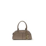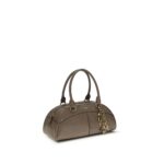 The Bowling Handbag by Chloé, crafted from smooth calfskin leather, features a structured, rounded silhouette with sturdy top handles. The interior includes a large main compartment and flat pocket, while the zipper closure provides convenience and security. The removable golden key ring, embellished with dangling charms and the letters Chloé, adds a distinctive touch and celebrates the elegance of the Maison’s heritage.