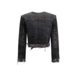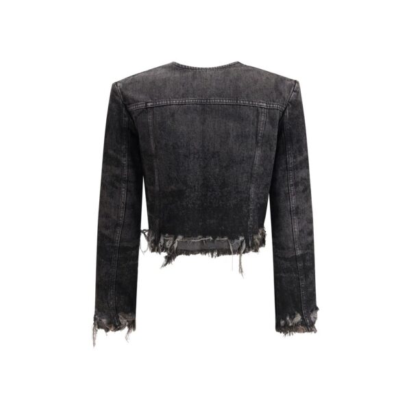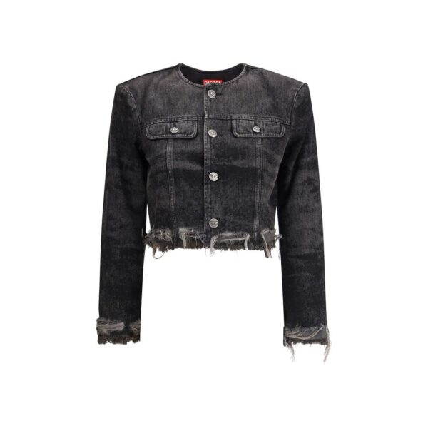 Final Cost: After CouponThe laser-engraved cotton-hemp denim Jacket by Diesel offers a tailored reinterpretation of the classic trucker jacket, blending craftsmanship with a contemporary edge. Part of the Runway Fall Winter 25 collection, it features a cropped, collarless silhouette with bold frayed edges that emphasize its deconstructed appeal. Made from a refined cotton-hemp blend, the stonewashed denim showcases laser-drawn graphics in shades of grey, creating a distinctive and sophisticated visual texture. The design is completed by a metal button closure, chest pockets with button flaps, and a lined interior, combining style and practicality in true Diesel fashion.