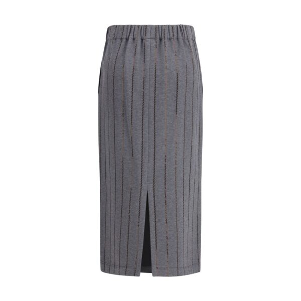 Final Cost: After CouponThe Embellished Midi Pencil Skirt by Brunello Cucinelli features a fitted silhouette designed to follow the body with refined structure. The elasticated waistband offers comfort and a secure fit, while the rear slit ensures ease of movement without compromising the skirt’s clean line. The surface is enriched with signature embellishments applied with precise craftsmanship, adding subtle brightness and a polished finish. A versatile, understated piece that brings a touch of artisanal elegance to modern dressing.