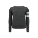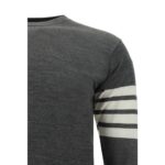 Final Cost: After CouponFleece Wool Sweater by Thom Browne, ribbed crew neck, ribbed hem, ribbed cuffs, iconic brand contrast stripes on left arm, monochrome pattern, regular fit.