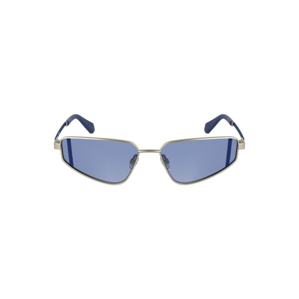 Infuse your vision with a touch of refined elegance with these Calvin Klein sunglasses. Crafted for the fashion-forward, these metal frames boast a sleek rectangular design, complemented by the cool allure of blue lenses. Perfectly engineered with a lens width of 57 mm, these shades ensure a comfortable fit with a bridge of 15 mm and temples measuring 140 mm. The gray hue and contrasting details underscore the brand’s penchant for sophistication, while the logo assures authenticity.