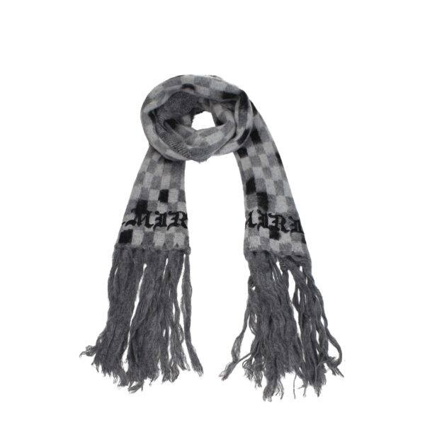 nThe product with MPN MSC007030 and code F76348 modal in gray is a scarves designed by Amiri. It has features like fringes, front logo.
