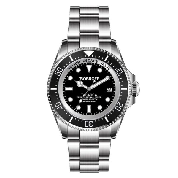 Special Functions:DATE-HELIUM VALVE-316L STAINLESS STEEL CASE-41H CHARGE RESERVE-UNIDIRECTIONAL ROTATING BEZEL IN LUMINESCENT CERAMIC WITH 120 CLICKS-THREADED CROWN-LUMINESCENT HANDS AND INDEXES-HELIUM VALVE-4.