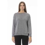 Elevate your style quotient with Baldinini Trend’s crew neck sweater, where elegance meets edge. Impeccably crafted in Italy, this piece is a harmonious blend of viscose, marabou, polyamide, wool, and a touch of cashmere, offering unmatchable comfort with a luxurious feel. Featuring a distinguished central seam, ribbed details, and side slits for a contemporary twist. The iconic Baldinini Trend monogram in metal adds an exclusive signature finish to this gray knit masterpiece. A must-have staple for those who dress to impress!