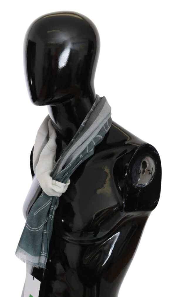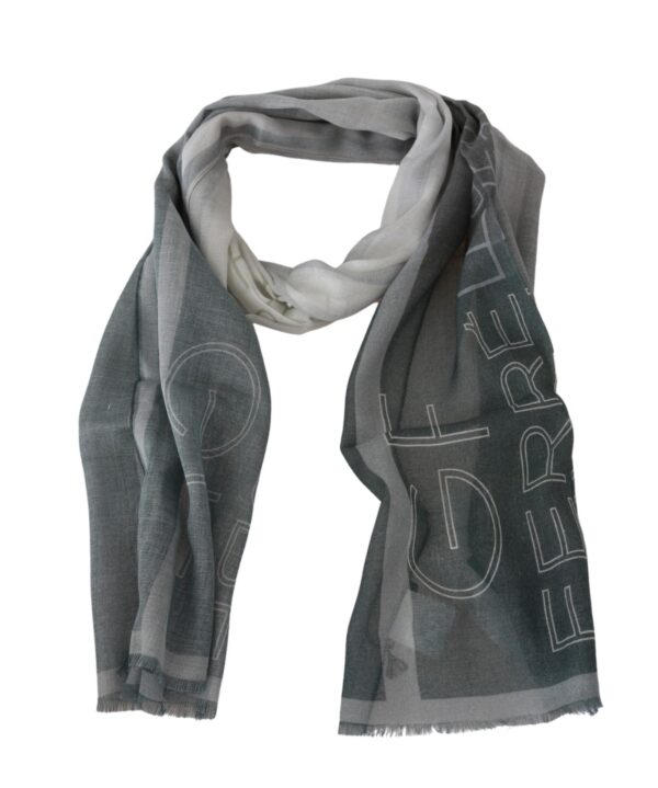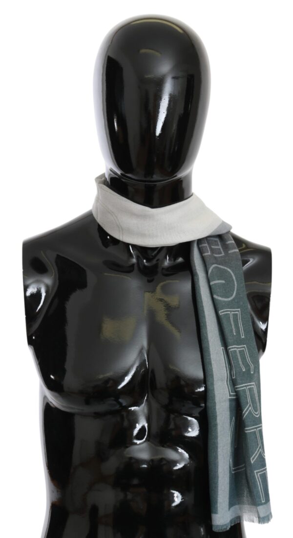 GF Ferre - Gray Wool Viscose Foulard Patterned Branded Scarf