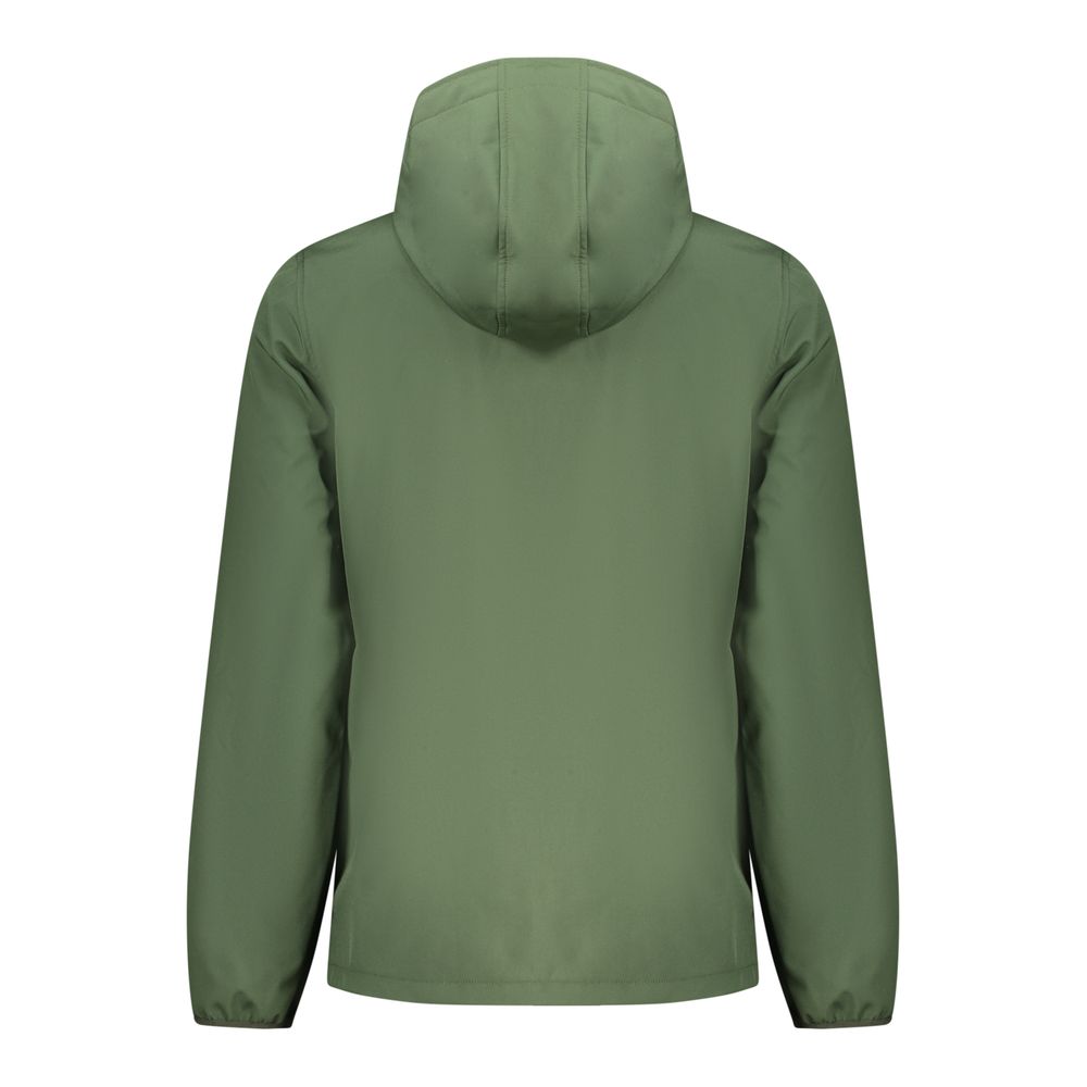 LONG-SLEEVED SOFT SHELL JACKET WITH HOOD, 1 CENTRAL POCKET WITH ZIP AND VELCRO CLOSURE, HALF ZIP, SIDE ZIP, APPLIQUE, LOGO