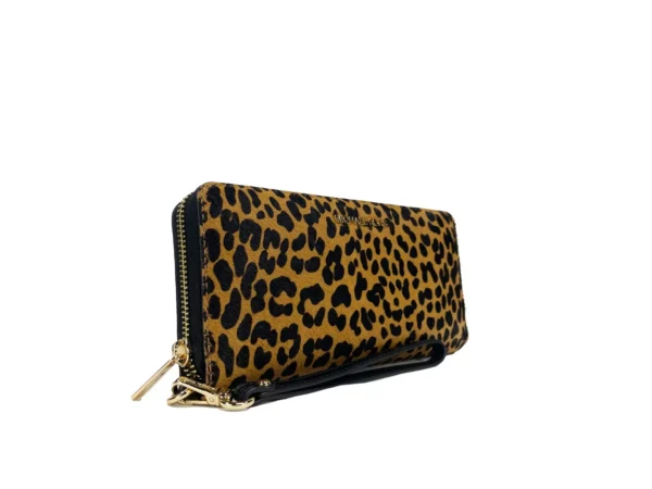 Features: Michael Kors Front Logo Plate, 5.5″ Detachable Wristlet Strap, 16 Card Slots, 1 ID Window, 1 Zip Coin Compartment, 5 Full Length Bill Slots