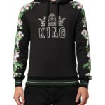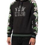Absolutely stunning, 100% Authentic, brand new with tags Dolce & Gabbana hooded sweatshirt.This stunning piece features the iconic KING crown embroidery on the chest, accented with orchid floral print along the sleeves. Ribbed cuffs and hem with green and white striped detailing complete the look.