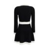 Balmain’s Knit Short Dress combines structured elegance and comfort. Made of stretch knit, it features a feminine silhouette with a flared skirt, collar and ribbed trim. The front closure is embellished with embossed buttons, the house’s iconic detail that adds a refined touch to the bold design.