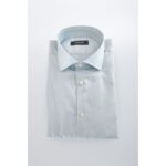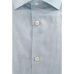 Elevate your wardrobe essentials with the Baldinini Trend’s immaculate craftsmanship—introducing the Slim Fit Shirt for the modern gentleman. The French collar converges classic elegance with contemporary style, while the meticulous front button closure ensures a seamless silhouette. Each cuff is meticulously fashioned with buttoned finesse, catering to the finer tastes of sartorial excellence. A masterpiece rendered in a refreshing light blue hue that invigorates your ensemble with a touch of Italian sophistication.