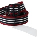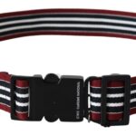 is crafted from leather fabric, this stylish belt featuring stripe black and red design and a buckle fastening.