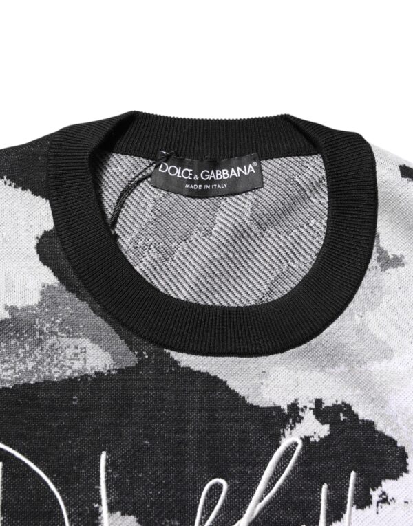 Absolutely stunning, 100% Authentic brand new Dolce & Gabbana sweater showcases a contemporary take on their signature camouflage print. The black and white colorway adds versatility, while the round neck and embroidered logo elevate the design.