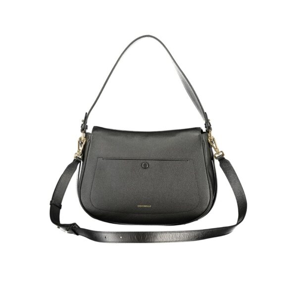 Unleash the epitome of chic with COCCINELLE’s MAVERY BAG—a true testament to Italian craftsmanship. This exquisite accessory balances versatility with high-end fashion, featuring a detachable shoulder handle and an adjustable strap for your comfort. Practicality meets luxury with an external pocket and two spacious compartments, further highlighted by a singular internal pocket for your essentials. Bold contrasting details and the iconic logo closure make a statement, while the timeless black hue allows for seamless integration into any wardrobe.