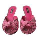 Dolce & Gabbana - Pink Exotic Leather Kitten Heels Slides Shoes