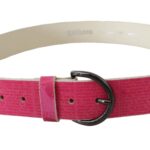 is crafted from pink leather, this classic belt featuring black-tone hardware and a buckle fastening.