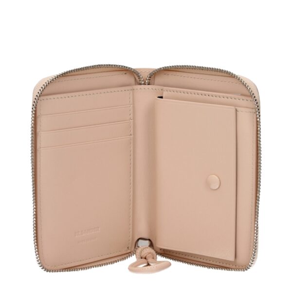 nThe product with MPN J07UI0006P5354679 and code F84995 leather in pink is a wallets designed by Jil Sander. It has features like front logo.