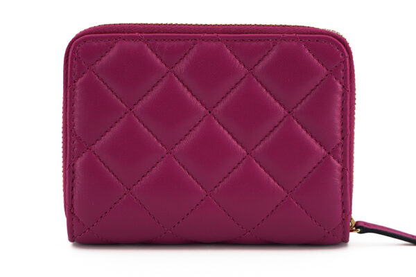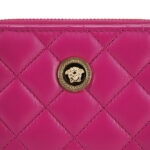 nDetails: Zip around and snap closure, a gold toned medusa head logo hardware, 2 main compartments, with 6 card holder slots.