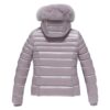 Wrap yourself in the fusion of luxury and comfort with this Regrigiwear women’s short down jacket. Crafted from premium nylon, this exquisite piece boasts a lush 100% feather padding ensuring warmth without the bulk. The fur-trimmed hood serves as a statement of your stylish sensibilities, while the zip fastening and side pockets deliver both form and functionality. Adorned in a majestic purple hue, it’s a garment designed for the bold and the beautiful.