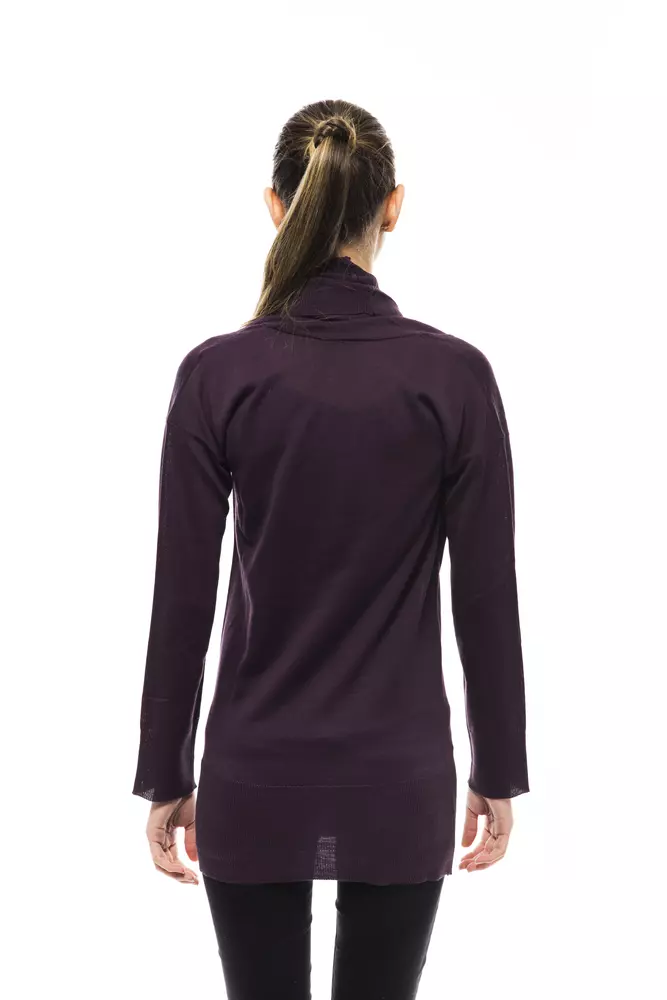 Elevate your sweater game with Montana Blu’s exquisite High Collar Max Pull Sweater, featuring a dazzling embellished logo that adds a touch of glamour to any look. Crafted from a cozy blend of wool and acetate, its rich purple hue exudes sophistication and style. Perfect for those who appreciate the luxurious warmth with a bold fashion statement.