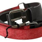 nis crafted from red brwon leather, this classic belt featuring metal-tone hardware and a buckle fastening.
