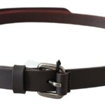 Costume National - Red Brown Leather Silver Logo Buckle Waist Belt