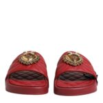 Gorgeous brand new, 100% Authentic Dolce & Gabbana luxury flat-heeled slides crafted from high-quality leather, featuring the distinctive Devotion heart motif with a metal buckle on the strap.