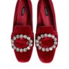 Gorgeous brand new with tags, 100% Authentic Dolce & Gabbana Jacquard Loafers Flatcrafted in rich red velvet, adorned with a statement crystal buckle. A timeless luxury piece, handmade in Italy, perfect for elevating any elegant look.