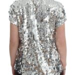 Gorgeous brand new with tags, 100% Authentic Dolce & Gabbana white with silver sequined party evening blouse top. This item comes from the exclusive MainLine Dolce & Gabbana Collection.