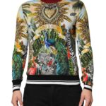 Gorgeous brand new, 100% Authentic Dolce & Gabbana pullover sweater. This luxurious silk piece features a vibrant tropical print adorned with a striking heart and crown motif, embodying the brand’s signature blend of bold romance and Italian flair. Expertly crafted in Italy, it offers a smooth, lightweight feel with a classic crew neck and ribbed trims for a refined finish. A true statement piece perfect for standout styling.