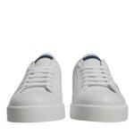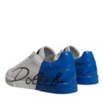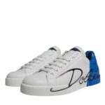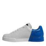 Gorgeous brand new with tags, 100% Authentic Dolce & Gabbana Portofino sneakers come with the brand name lettered on them. Made from leather in a blue and white shade, they feature lace-up vamps, round toes, and comfortable rubber soles.
