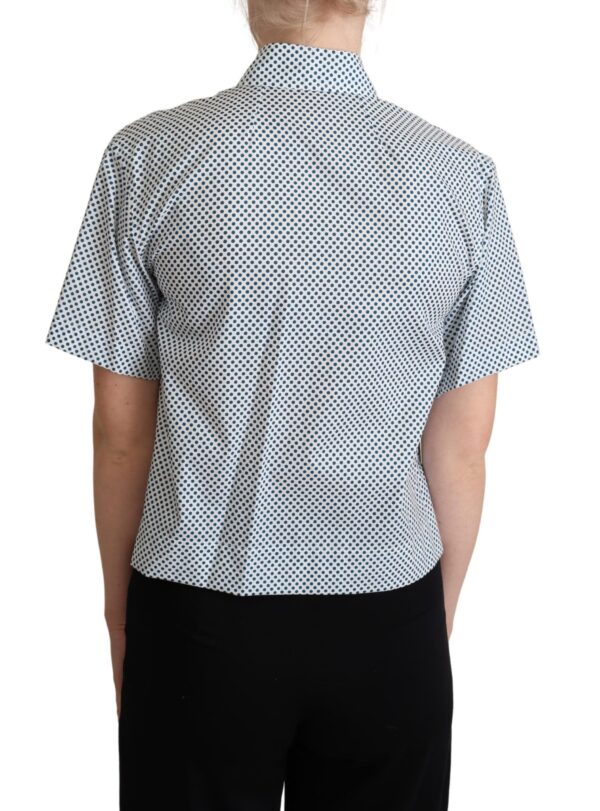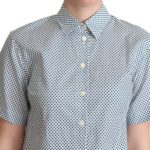 Gorgeous brand new with tags, 100% Authentic Dolce & Gabbana shirt is crafted from the finest quality cotton. The half-sleeved shirt has a polka dots pattern in blue shades throughout.