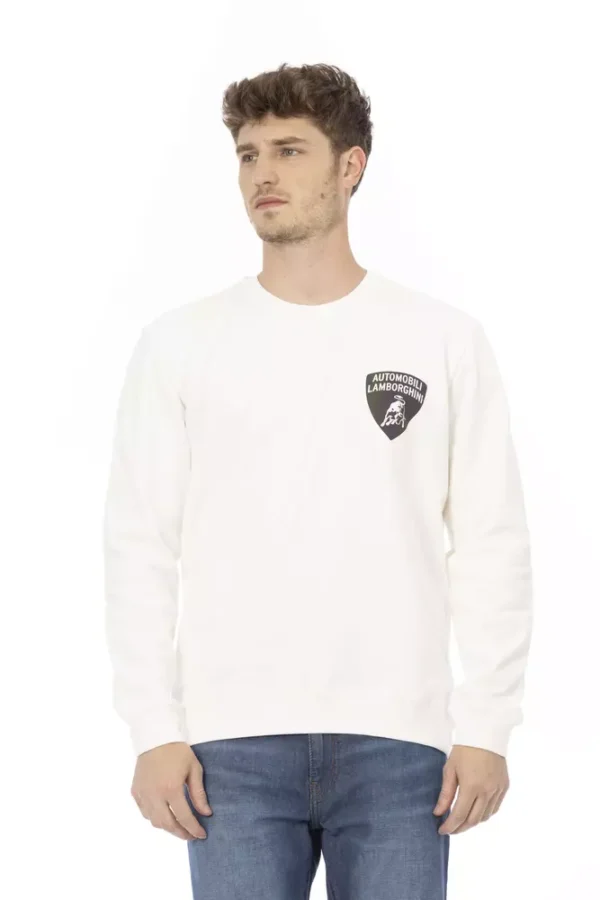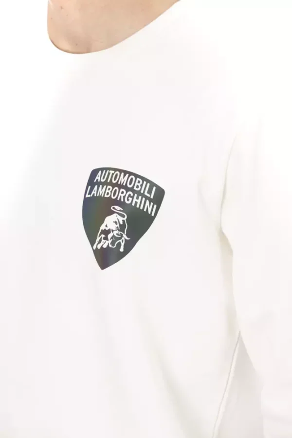 Elevate your wardrobe with the impeccable sophistication of Automobili Lamborghini’s crewneck sweatshirt. The epitome of style meets comfort, this sleek piece features the iconic shield logo emblazoned on the chest and a bold lettering print at the rear, exuding a sense of luxury with every wear. Crafted from a plush blend of cotton and elastane, each detail from the snug ribbed cuffs to the pristine white hue showcases the fine craftsmanship synonymous with the celebrated brand.